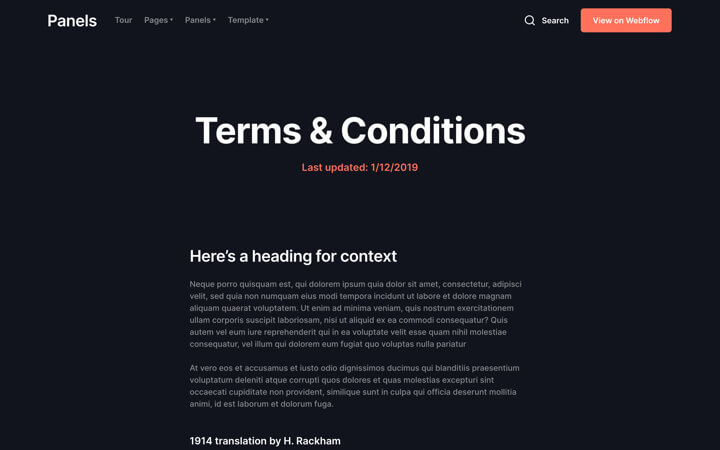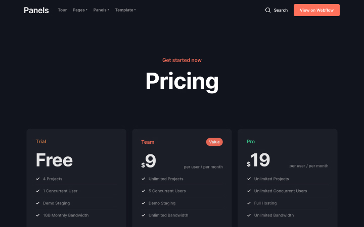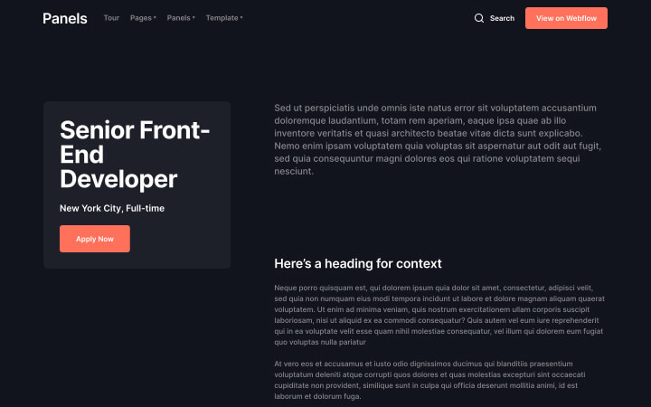 Panels for Webflow CMS